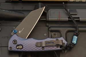 Description: When blade length is restricted, necessity isn’t. Designed for ease of concealment and compact utility, the Full Immunity (290BK) features a sub-2.5 inch CPM-M4 blade with a cobalt black Cerakote finish, boasting outstanding edge retention and strength in a wharncliffe profile tapering to an ultra-fine point. The included lanyard speeds up retrieval from the pocket for manual deployment in evolving situations. Finished with anodized crater blue aluminum handle scales, the Full Immunity is a concentrated dose of full-fledged utility in a compact configuration.