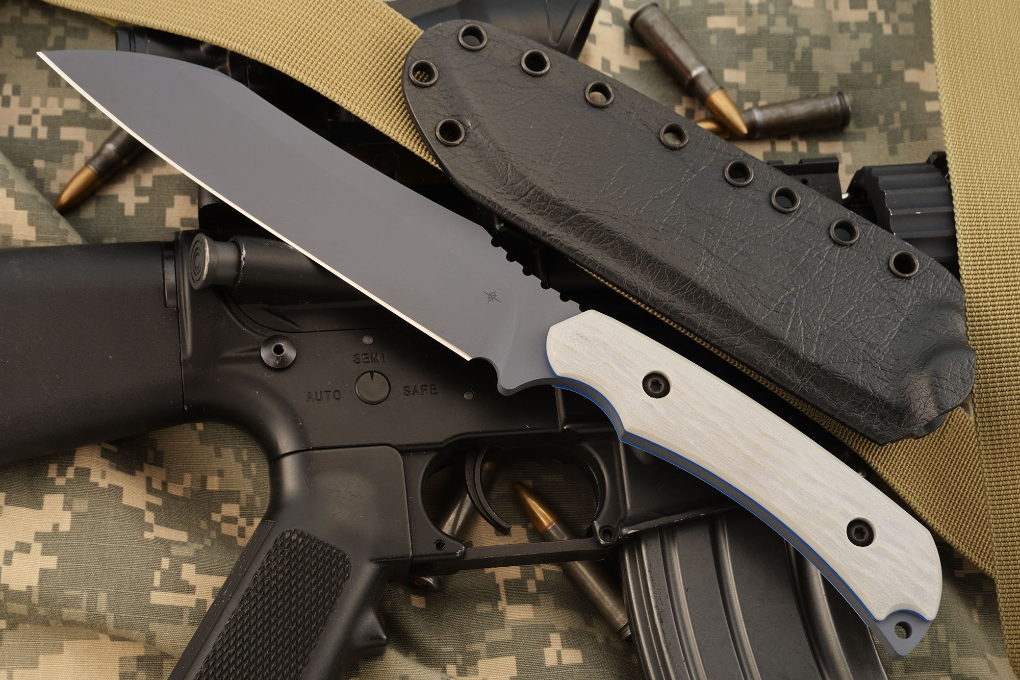 To keep the knife close at hand, a low profile FlexTech Kydex sheath is included. The sheath requires about 6 lbs. of draw which means it will not accidently fall out of the sheath -- but it is still very easy to draw when needed. Multiple friction offsets prevent the blade from rattling even after many sharpenings.