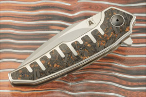 Handle: Titanium scales inlaid with copper shred carbon fiber