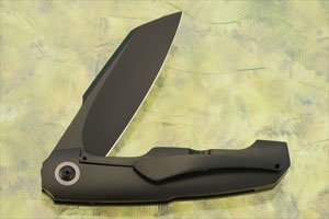 The 6Al-4V titanium handle has a matching black Cerakote finish. The sturdy framelock provides a strong lockup. Crosscut ancient mammoth ivory is inlaid into the titanium frame. Zirconium pivot collars surround the pivot. The black titanium pocket clip is mounted for right-side, tip-up carry.