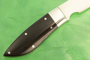 The fit between nickel silver bolsters and black linen Micarta handle scales is excellent -- without a perceptible seam.