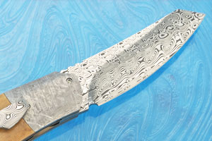 The blade is high performing stainless damascus forged by Damasteel in Sweden. This stainless damascus is created using powder metallurgical manufacturing to provide excellent edge retention and unmatched beauty. The damascus is deeply etched to really show off the pattern.
