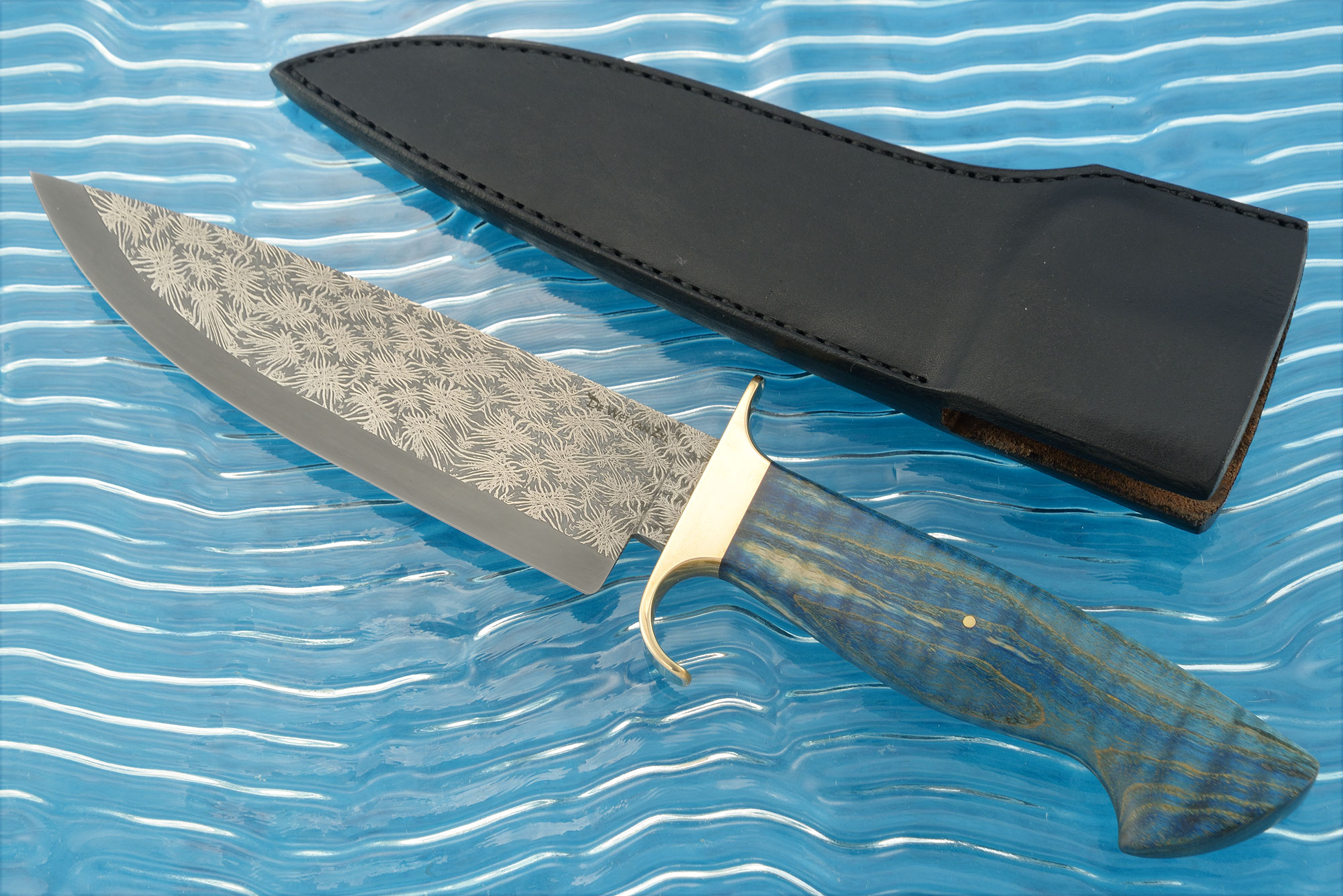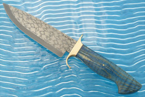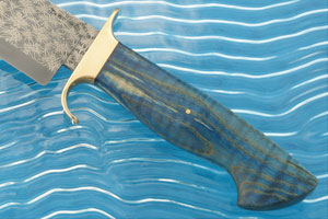 The handle is dyed and stabilized curly maple. The handle is hand contoured to provide a comfortable, ambidextrous grip. It is perfectly fit to a polished bronze guard.