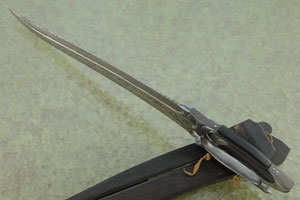 Description: Roger Bergh's work is in a class of its own. His control over damascus and his skill at combining exotic materials set him apart as an artist. This stunning sword combines an elegant damascus blade with a combination of beautiful materials that is a perfect example of why Roger is so well regarded. This sword was in a private collection and is in brand new condition. By all appearances, Roger could have made it yesterday!
