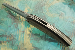 This Snout Front Flipper is a tremendous example of Corrie's work. The action is smooth and consistent, running on caged bearings. The blade is perfectly centered. The front flipper on this folder is extremely easy to use. Its small size means it doesn't get caught on things in the pocket.
