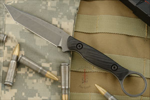 Handle scales are sculpted to provide a comfortable, slip-resistant grip. Jimping along the spine provides an excellent thumb purchase. Torx screws allow the scales to be removed for detailed cleaning or rust removal. The 1/8 inch ring at the rear makes the knife easy to draw and provides extra retention.
