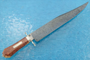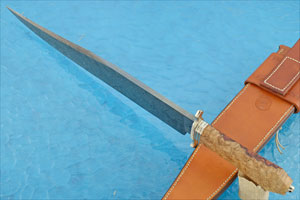 15" Damascus Coffin Handle Bowie with Amboyna Burl