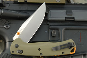 Description: Make the leap from hunt carry to everyday carry. By popular request, the 15536 Taggedout subtly reconfigures this hunt-optimized folder into a multi-role outdoor EDC. Replacing the thumb hole with an orange anodized thumb stud and bearing an orange anodized lanyard backspacer, this Taggedout also trades in the featherweight Grivory handle for OD Green G10. With a CPM-S45VN blade providing increased edge retention and corrosion resistance, this upgraded Taggedout is ready to take on everything your adventure has in store.