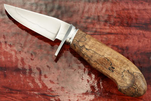 The contoured handle is stabilized spalted maple wood. It locks your fingers securely between the beak and guard. The wood handle and blade are perfectly fit to the fluted stainless steel guard. The handle is broad, providing a comfortable grip through hours of work.
