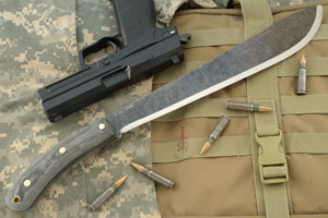 The Darien Machete is a bonified chopping machine whether out in the Amazon or the jungle in your own backyard! The 12-1/2 inch blade is 1075 carbon steel with a convex grind, giving the blade plenty of durability to chop through those thicker branches. A blackened finish gives the knife some limited rust resistance. The convex bevels, spine, and tang are satin finish. Because the knife is made from carbon steel, we recommend using drying the knife and oiling it with camellia oil before putting it away.