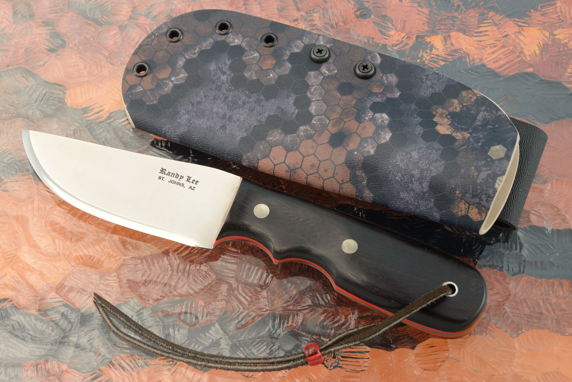 To keep the knife close at hand, a Kydex sheath made by Randy Lee is included.