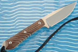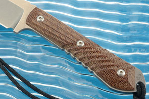 Featuring the utility of a drop point and enough belly for skinning, this all-purpose knife will prove useful in a multitude of applications. The CPM-S35VN tang and blade results in a knife that is sturdy and practical. This steel from Crucible features a particularly small crystal structure caused by the inclusion of Niobium as a grain refiner. The Micarta scales are carved with spiral and linear grooves, providing a sure grip. Deep jimping on the spine ensure a secure thumb purchase.