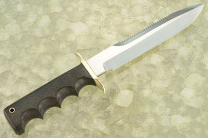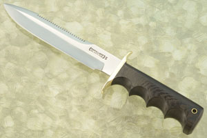 The Model 16 Fighter is a classic combat knife. From the non-slip finger groove handle, to the spear point blade and top serrations, no matter your adventure this knife has you covered.