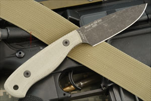 The ESEE-JG3 would feel right at home in almost any environment, from deep in the Amazon jungle to walking around your neighborhood. The 3-1/2 inch blade features a sabre grind and stonewash black oxide finish. This would be a perfect choice for a daily carry utility knife or skinning knife. It would be equally adept helping you prepare your next meal around the campfire.