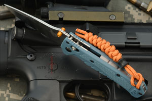 • CPM-MagnaCut stainless steel blade (HRC 60-62), drop point, stonewash