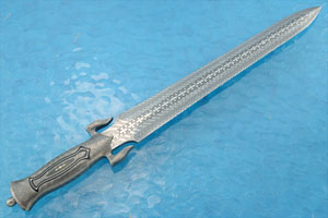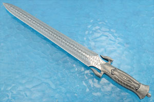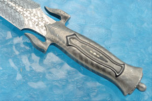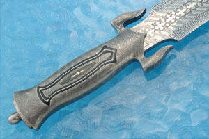 Product Description for Mosaic Damascus Short Sword with Mamamoth Ivory, Blackwood, and Reindeer Antler