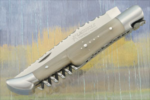 Laguiole Guilloché Picnic Knife with Corkscrew, Horn Tip