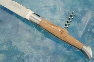 Product Description for Laguiole Guilloché Picnic Knife with Corkscrew, Olivewood