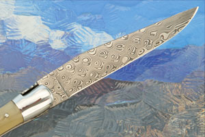 Damascus Laguiole Guilloché Picnic Knife, Horn Tip