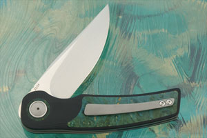 Handle: Black G-10 inlaid with green dyed and stabilized maple burl inlays