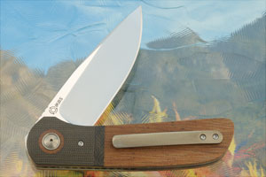 Description: This Kosie Steenkamp custom Comoda Flipper is a fantastic utility folder -- yet it would feel equally comfortable in most any collection. The drop point blade and ergonomic handle are perfectly designed for any task at hand. The folder has incredibly smooth action thanks to the IKBS bearing system. The Ikoma Korth Bearing System (IKBS) was originally designed to fit balisong knives and uses ball bearings to create exceptional action with no blade play. The flipper is tremendously easy to use.
