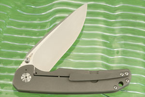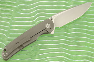 The titanium frame is bead blasted and tumbled titanium, set on barrel spacers. A lockbar stabilizer prevents accidental lock overtravel. The slim handle is comfortable and provides excellent grip. The 3D machined titanium pocket clip is mounted for right-side, tip-up carry.
