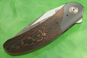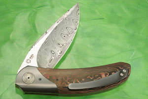 TF-4 Flipper with Copper Camo FatCarbon, Zirconium, and Damasteel (Ceramic IKBS)
