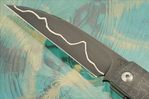 Handle scales are paper Micarta, set on bead blasted titanium liners. The scales meet mosaic damascus bolsters in an elegant curve. The liners surround a black paper Micarta backbar. The lightly contoured scales provide a comfortable grip. Torx screw construction is used throughout.