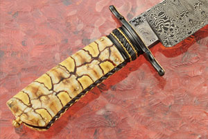 Damascus Clip Point Bowie with Mammoth Molar