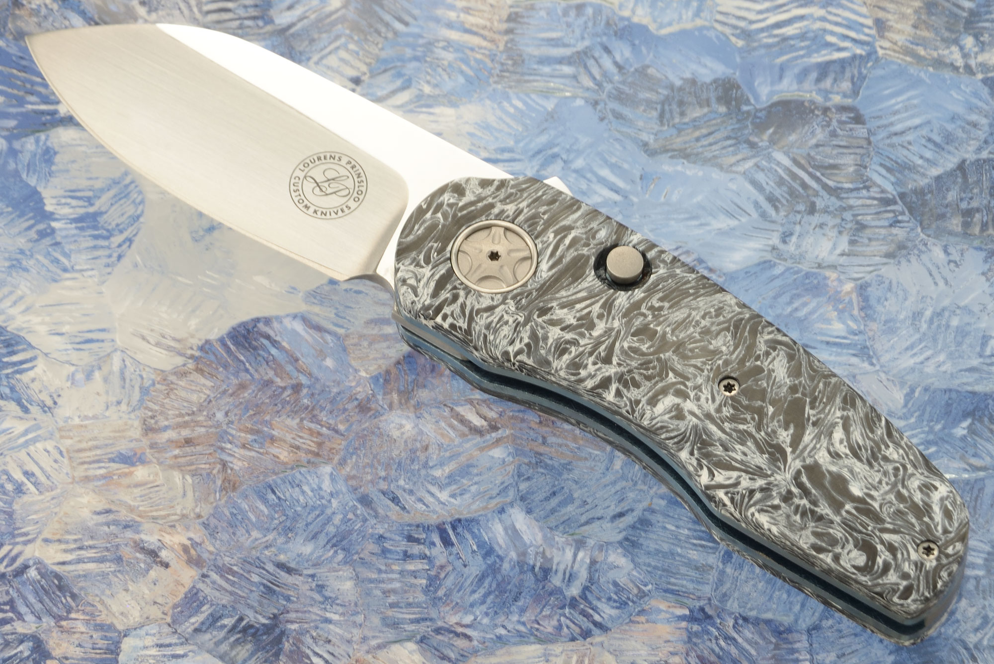 Description: Lourens Prinsloo made his first knife in 1996, shortly after attending a knifemaking course with Owen Wood. In 1998 he became a member of the Knifemakers' Guild of Southern Africa. Prior to his retirement in 2016, Lourens taught engineering, graphic design, woodworking, and metalwork. This variety of experience helped him tackle the challenges that exist with creating high performing folders that are beautiful as well as functional. His main focus is making gentleman's folding knives, specifically liner lock flippers, designed to be carried and used.
