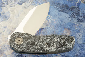Polar Dark Matter FatCarbon handle scales are set on anodized titanium liners. The Rausch external titanium pivot is surrounded by a titanium pivot collar.