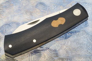 Handle: Blue Canyon Richlite inlaid with a natural Richlite escutcheon
