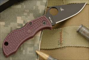 The Spyderco Manbug (MBBGBKP) is small, clip-less knife that is designed to be carried on a keychain or loose in the pocket. Don't let its small size deceive you, the Manbug can still tackle most daily cutting tasks with ease! The round hole opening system and backlock make the knife completely ambidextrous. Burgandy FRN (fiberglass reinforced nylon) handle scales keep the knife lightweight and the screws and other hardware are coated to match the blade.
