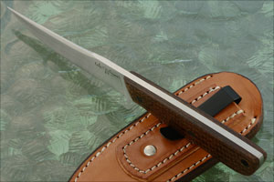 The blade is hand forged 1084 carbon steel to ensure excellent edge holding and chip resistance. A hand rubbed satin finish lends an heirloom quality to the knife. The flats are forge finished showing Luke forged the blade closely to shape to ensure optimal grain structure. The blade is flat ground and razor sharp. Luke's touchmark is on the left side.