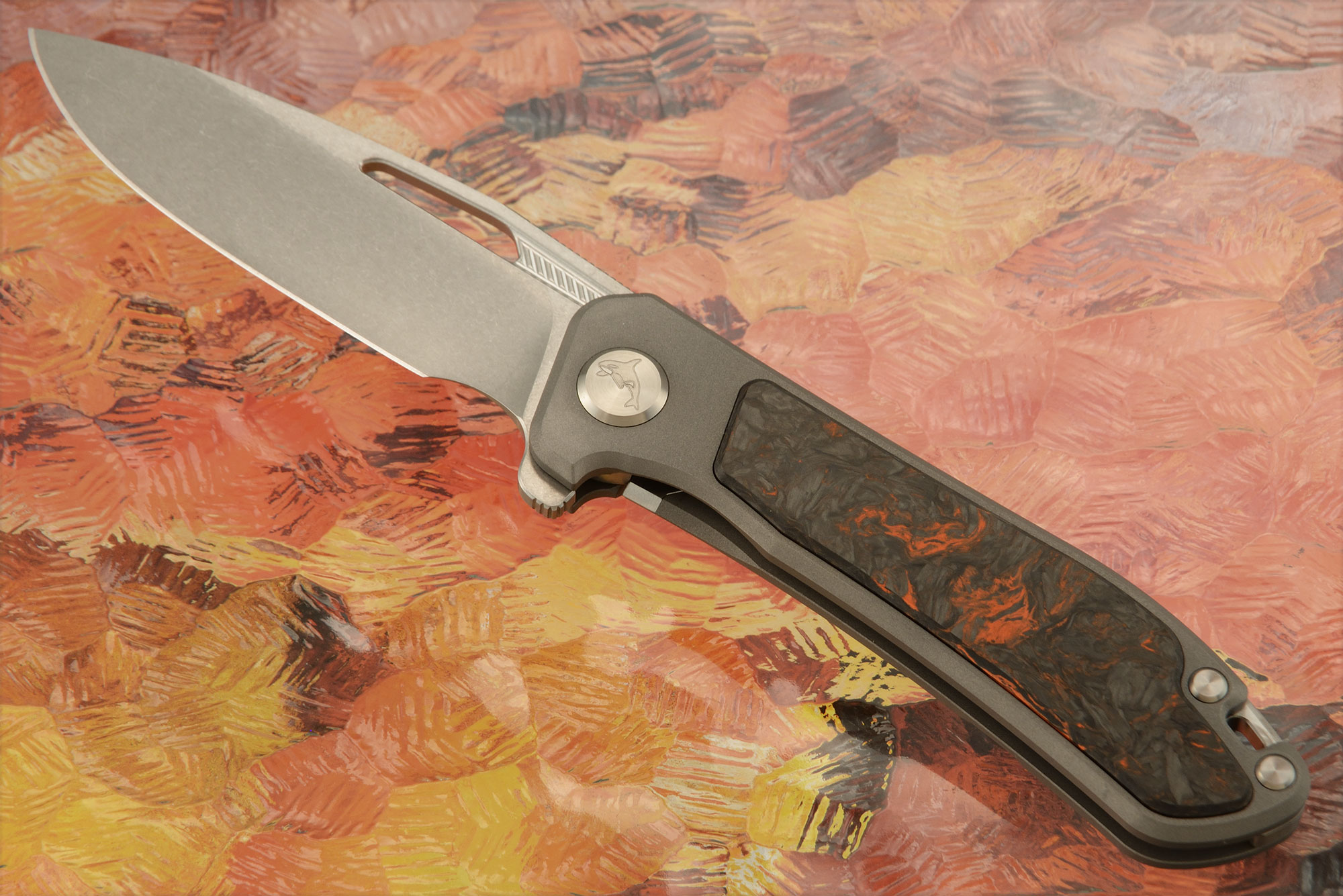 Handle: Grade 5 titanium with Orange Dark Matter FatCarbon inlay