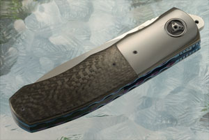Handle: Carbon fiber set on fileworked, anodized titanium liners