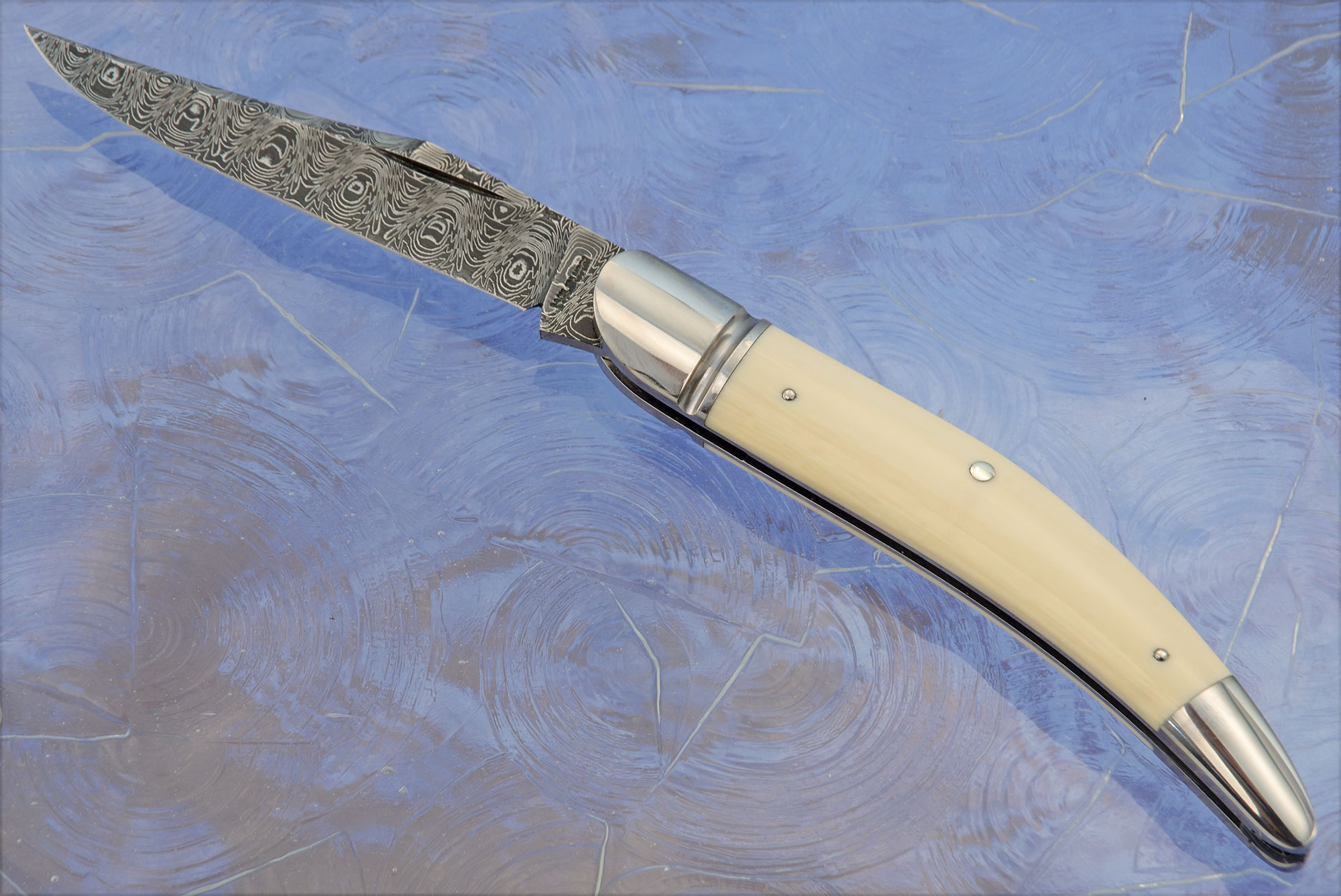 Damascus Texas Toothpick Slipjoint with Mammoth Ivory