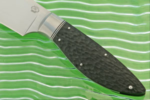 The 5 inch clip point blade is hand forged from 52100 carbon steel and features a meticulous hand rubbed satin finish. 52100 is considered by many knifemakers and knife users to be among the best steels (if not the best!) used in modern knifemaking. It combines exceptional edge holding with durability and ease of sharpening. The blade is flat ground and razor sharp. Tommy's touchmark is engraved on the left side of the blade.