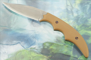 Brown G-10 handle scales are set on the skeletonized full tang for strength and durability. The scales are nicely contoured for a secure, comfortable grip. The screws are hand textured and heat blued.