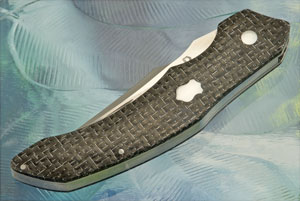 Silver strike carbon fiber handle scales are set on satin finished 316 stainless steel liners. A polished shield escutcheon is inlaid into the left side of the handle. The spring is also 316 stainless steel. The contoured handle provides a comfortable, secure grip.