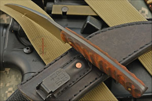 Handle scales are hand sculpted maple, secured to the full tang using brass pins. Despite its small size, the handle offers an excellent grip. The low profile makes this knife easy to keep on your belt and not even know it’s there until you need it. It is equally easy to carry it in your pocket.