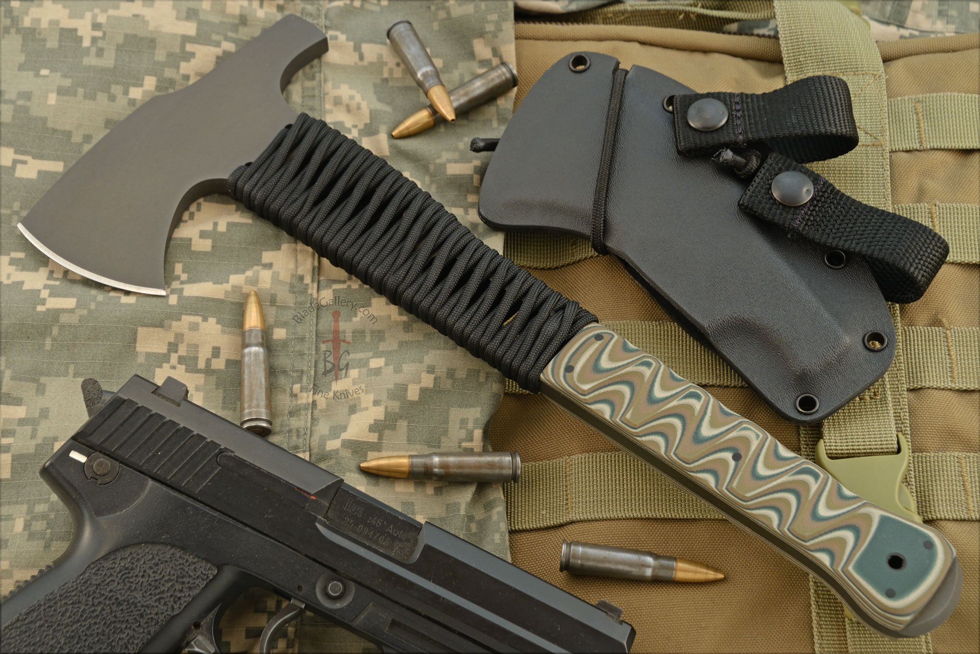 Hammer Combat Axe with Sculpted Camo G-10, Cord Wrap