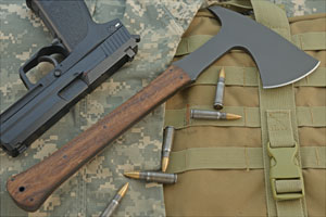 This Ridge Line Hatchet is accompanied by a lined Boltaron carrier with belt hangers.