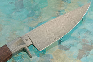 The bolster is integral to the blade, with the damascus pattern moving seamlessly from bolster to blade. This technique has superior structural integrity and requires a particularly talented smith.