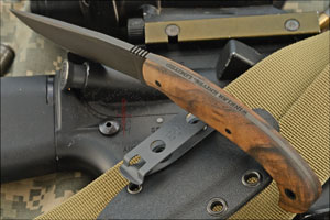 Limited edition premium Turkish walnut handle scales are set on the distal tapered full tang. The handle is downturned to make it incredibly easy to pull from the sheath during concealed carry. The spine features the Winkler Knives Limited touchmark.