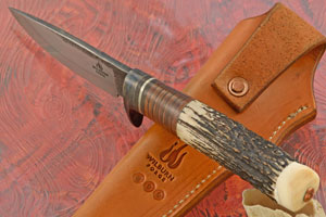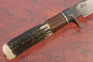 Handle: Stag, leather, Micarta, and mammoth ivory