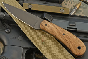 Limited edition quartersawn white oak handle scales are set on the full tang and secured using two pins. The scales have been gently rounded to fill the hand nicely.