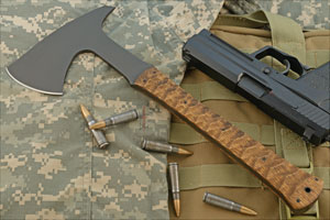 Description: This is a limited edition Ridge Line Hatchet with white oak handle scales.