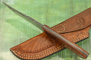 To keep the knife close at hand, a hand tooled, hand sewn leather custom sheath made by McCauley Custom in Montrose, PA is included.