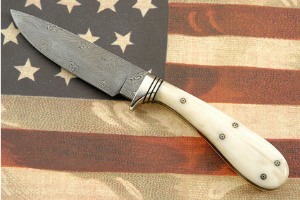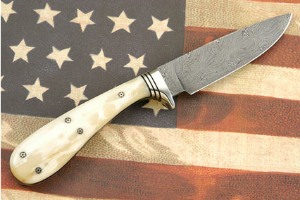 Description: This dramatic hunter will feel as at home in a collection as it will out in the field. The detailed damascus blade combines two bars of damascus -- each formed from 135 layers of alternating L-6 and 1084 carbon steels. This combination ensures excellent edge retention.